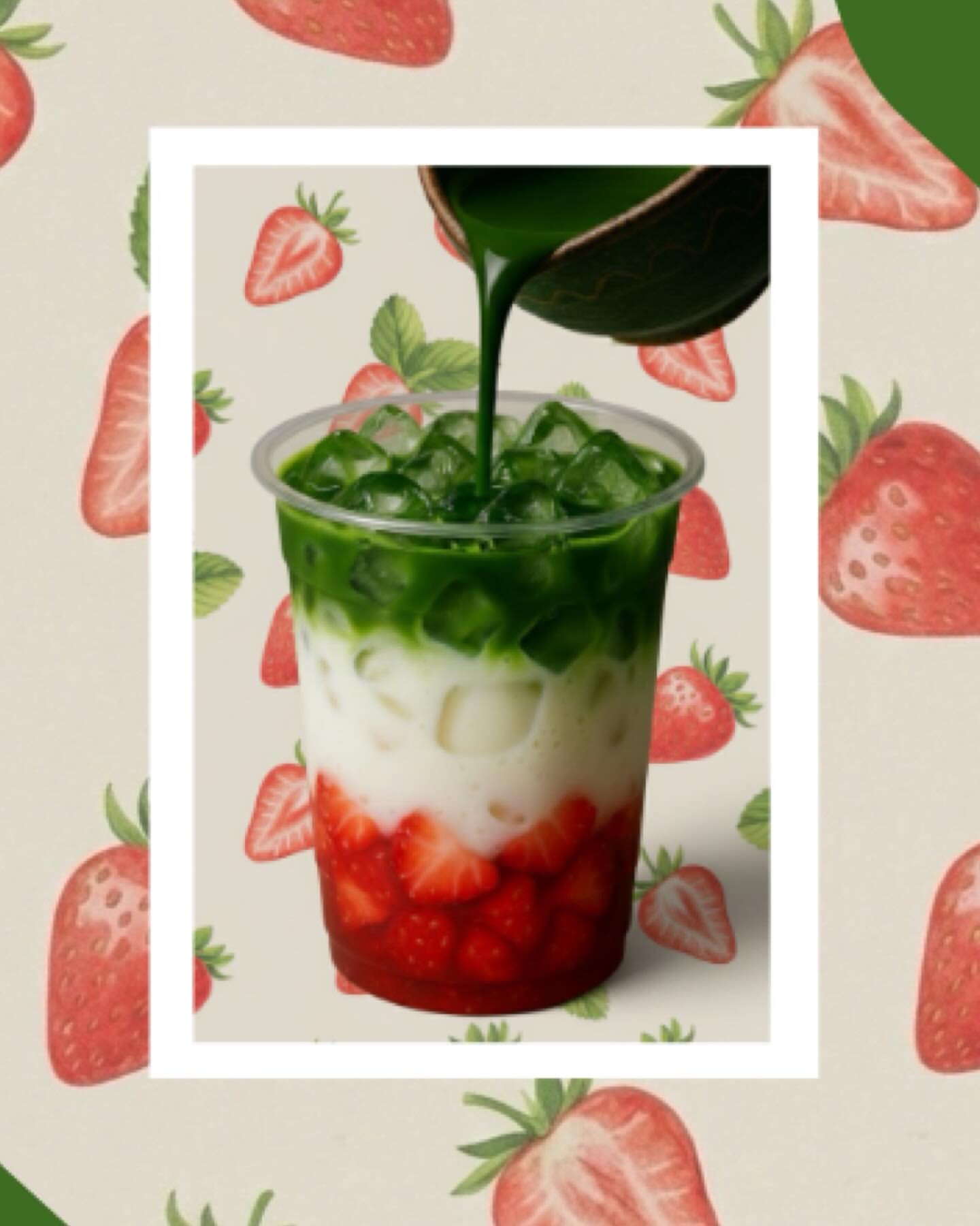 Lait de fraise Matcha pour une douce douceur.